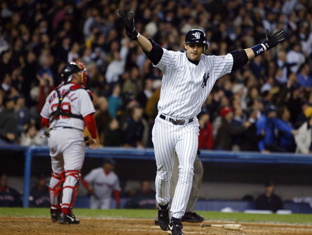 So, we’re at Perkins, the meal was finished, and we were just sitting around shouting the breeze. I heard someone at the table behind me shout, “The Yankees just tied it up in the bottom of the 8th!” I whipped around and begged my parents that we had to leave. We got home just in time for the start of extra innings, and I practically cannonballed onto the couch. Then, in the 11th inning, Aaron Boone came to the plate against Tim Wakefield (RIP) and that dreaded knuckleball. The thing about the knuckleball is: when it’s thrown well, it can be completely knee-buckling, making even the most experienced hitters look foolish. But when it’s not thrown well, when the wind doesn’t catch it the right way, it can be nothing more than a batting practice fastball. Well, for Wakefield, this flip of the coin came up “batting practice” and the knuckler came out flat…and Aaron Boone did not miss. With a now-iconic swing, Boone drove the ball down the left field line to send the Yanks to the World Series. Though they would go on to lose to the FLORIDA Marlins, Boone’s walk-off homer become the lasting image of that Postseason run.